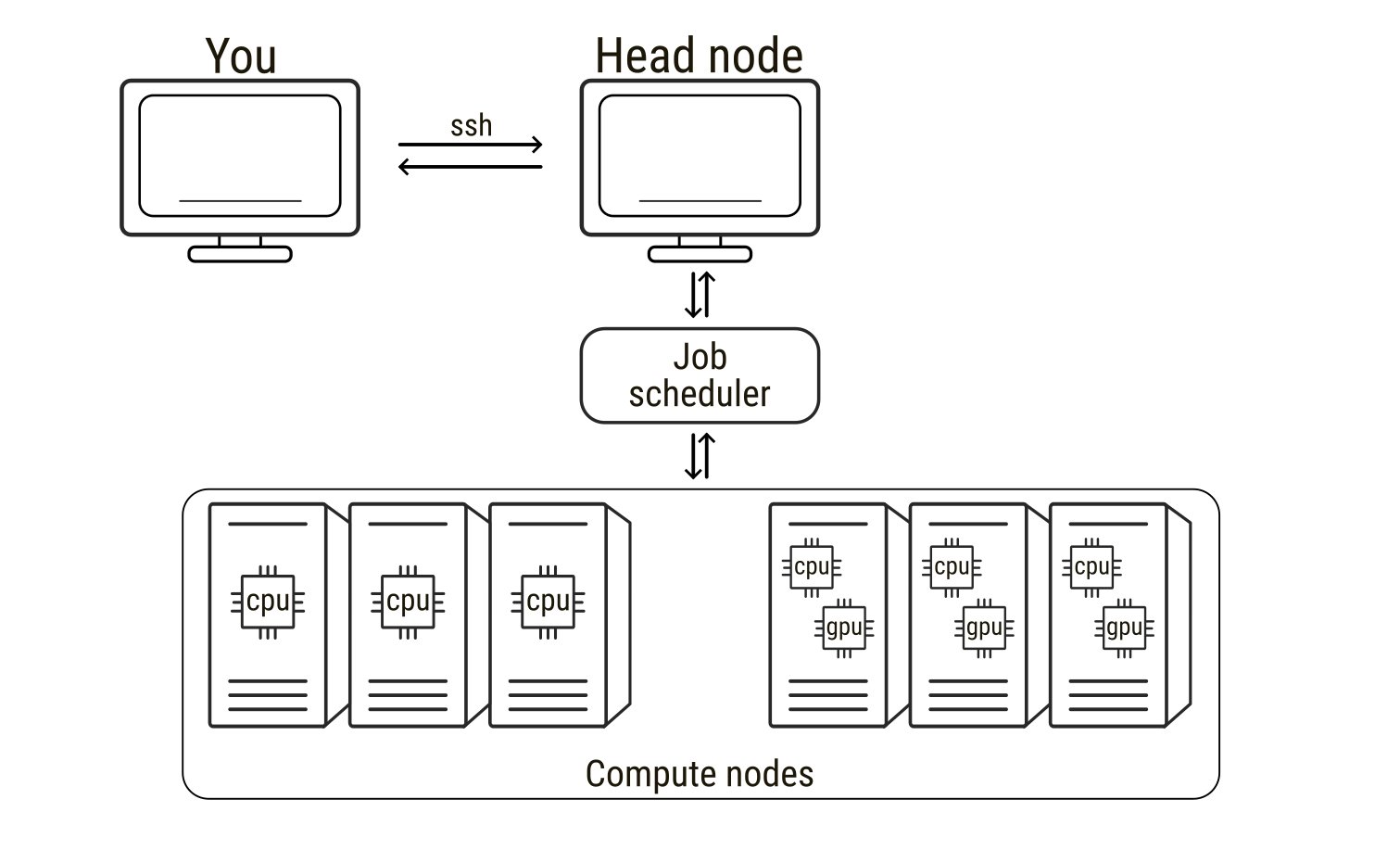 High-performance computing (HPC) refers to the use of powerful computer clusters to solve computational problems that are too large or time-consuming for a single workstation. HPC systems are extremely widespread in all scientific fields, from fluid dynamics of meteorological events to molecular modelling and molecular dynamics simulations. An HPC system is typically composed of many interconnected computers, usually called nodes, which can be used alone but can also work together to perform calculations in parallel. When connecting to an HPC service, users usually connect first to a head node, the central access point used for logging in, preparing files, and submitting computational tasks. The head node manages the cluster but is not intended for heavy computations. The actual calculations are performed on the compute nodes, which provide the CPUs, GPUs, and memory required for simulations. To use these compute nodes, researchers submit a job, that is, a request to run a program with specified computational resources. Jobs are managed by a scheduler that allocates nodes and runs tasks when resources become available. In molecular dynamics simulations, a job may involve running a simulation engine for millions of time steps, a process that can require days to weeks to finish. During this time the scheduler software monitors (to some extent) input and output of the jobs. As such, understanding how to prepare and run jobs on HPC systems, as well as requesting the correct type of hardware and being able to leverage it, is essential for efficiently performing large-scale molecular simulations.